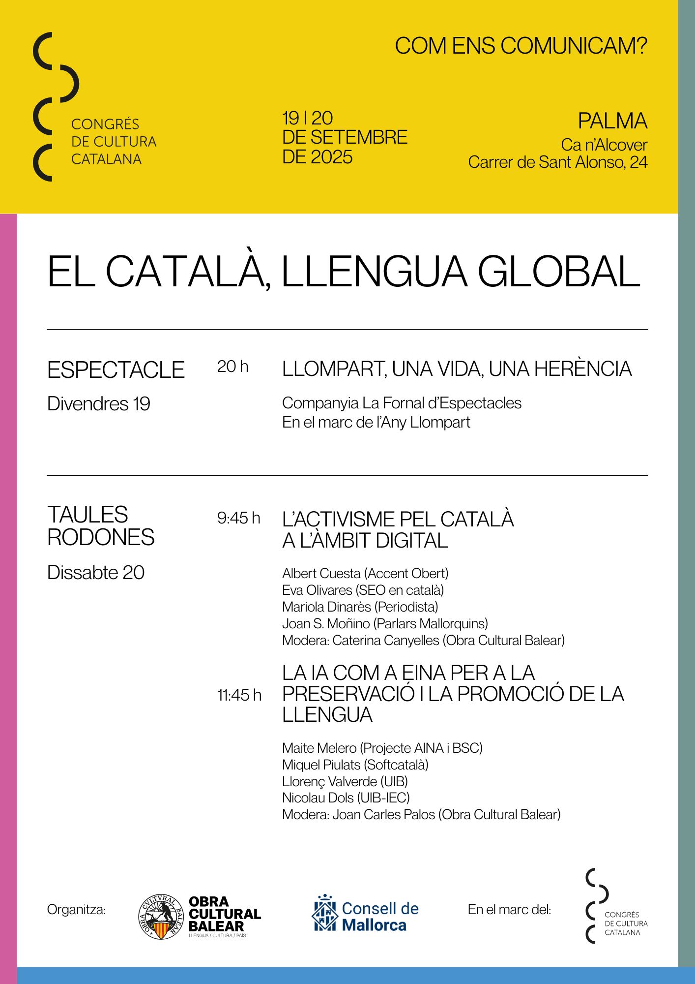 - Modera: Joan Carles Palos (Obra Cultural Balear)